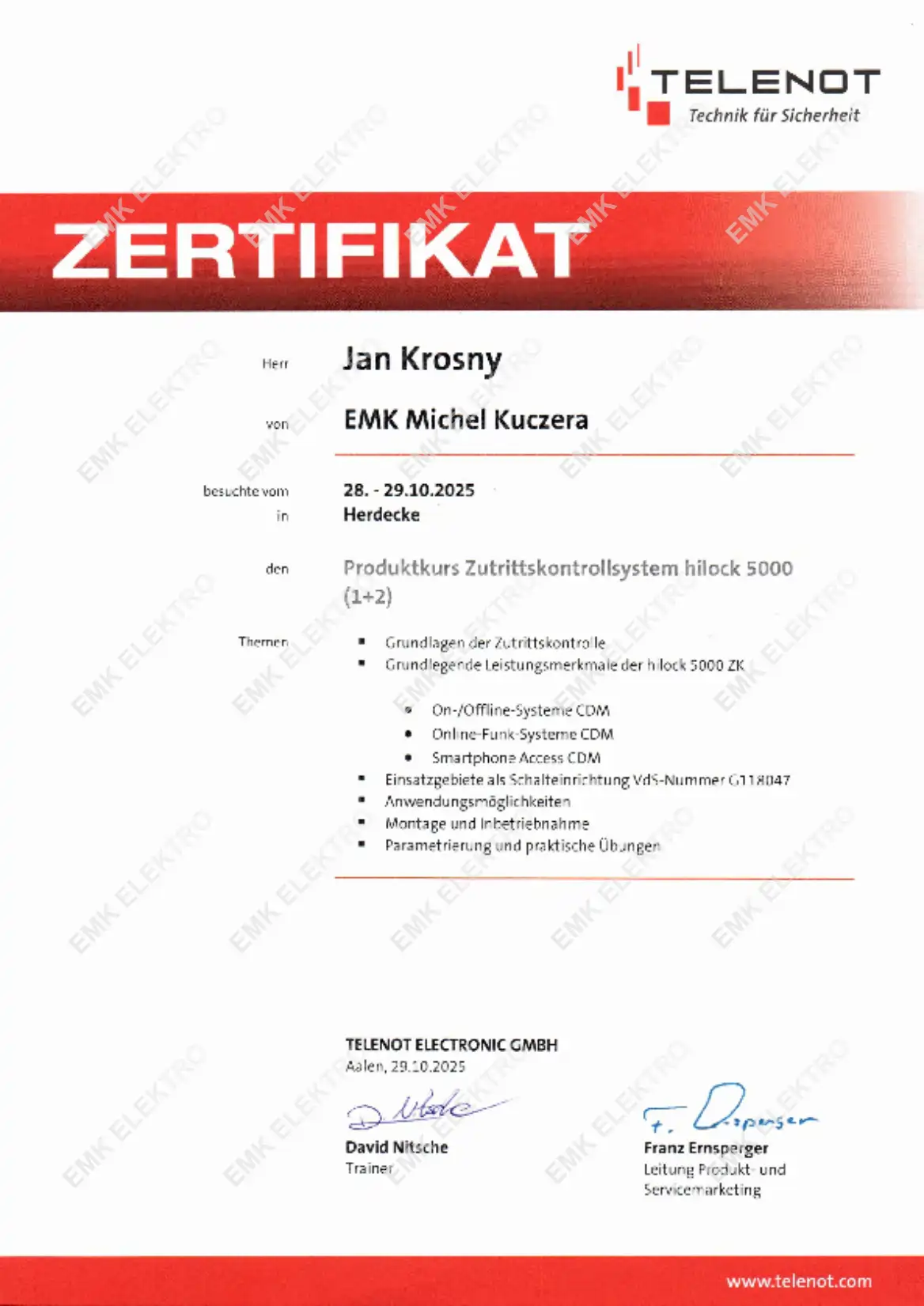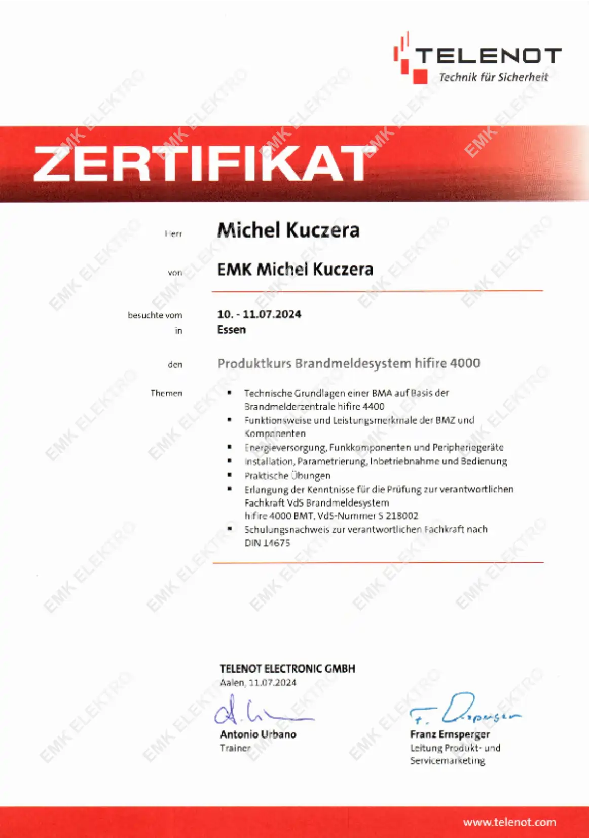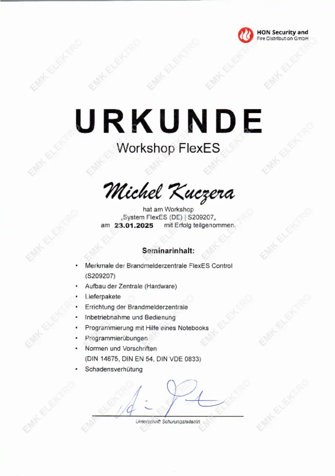 Die Firma EMK Elektro wurde im Oktober 2013 als Einzelunternehmen von dem Elektrotechnikermeister Michel Kuczera gegründet.