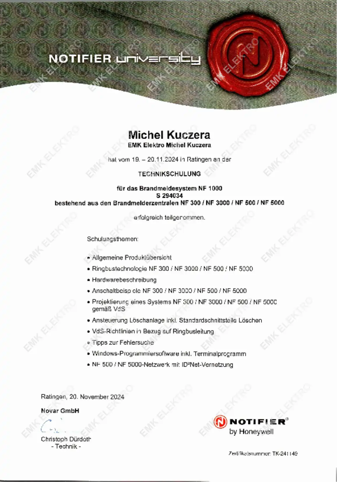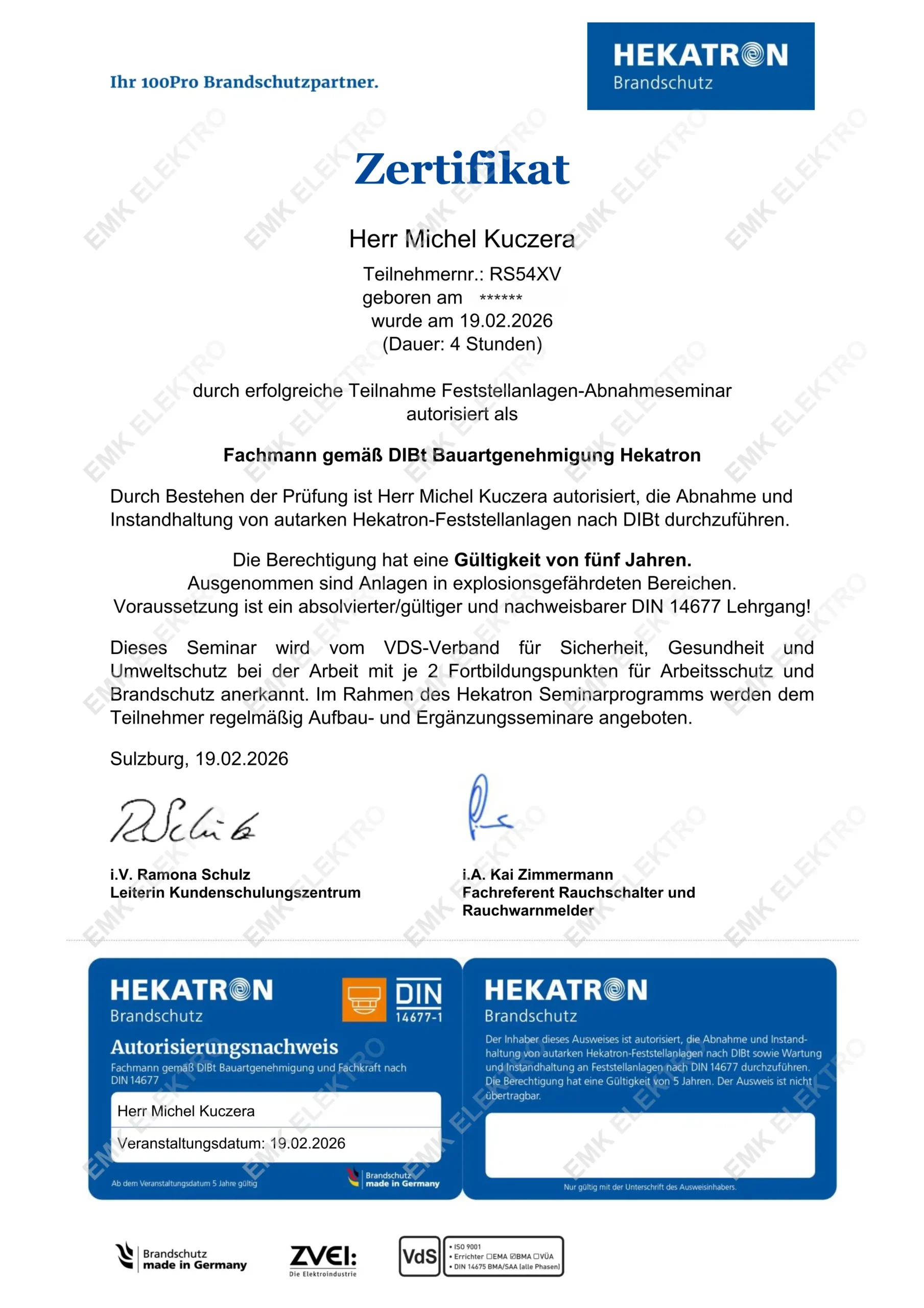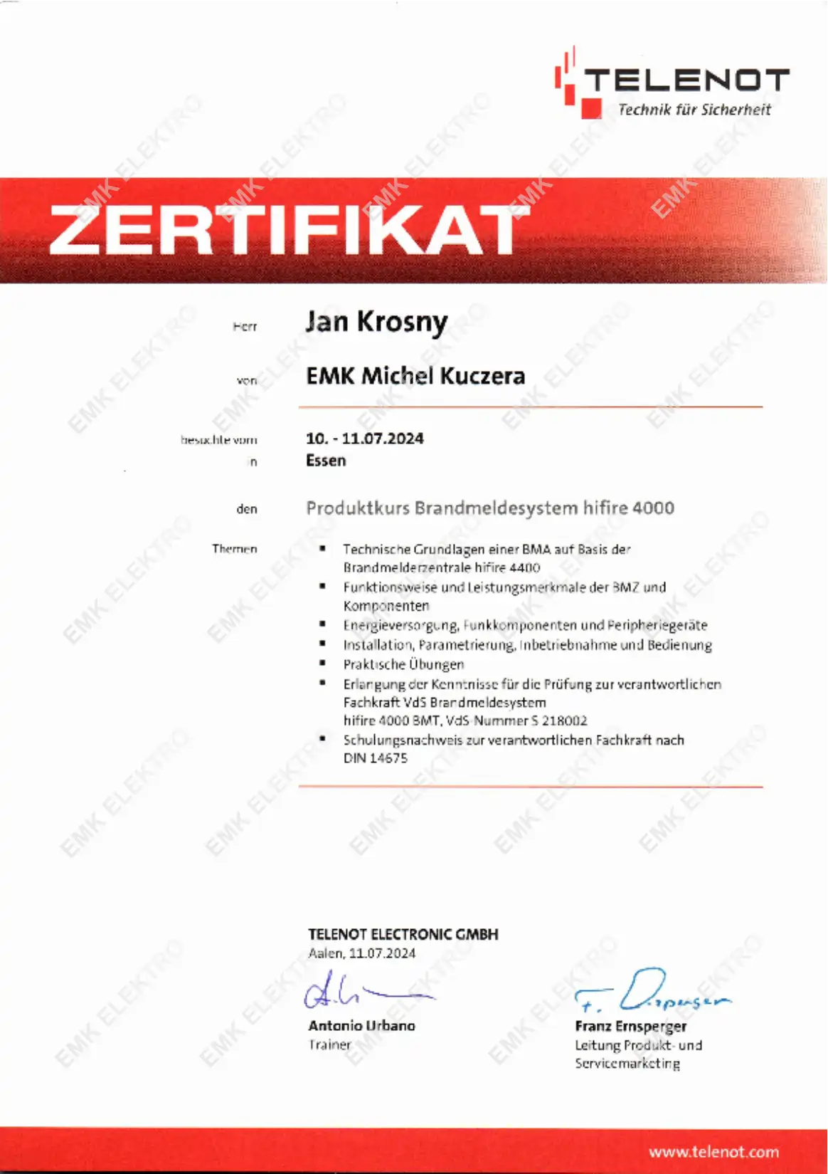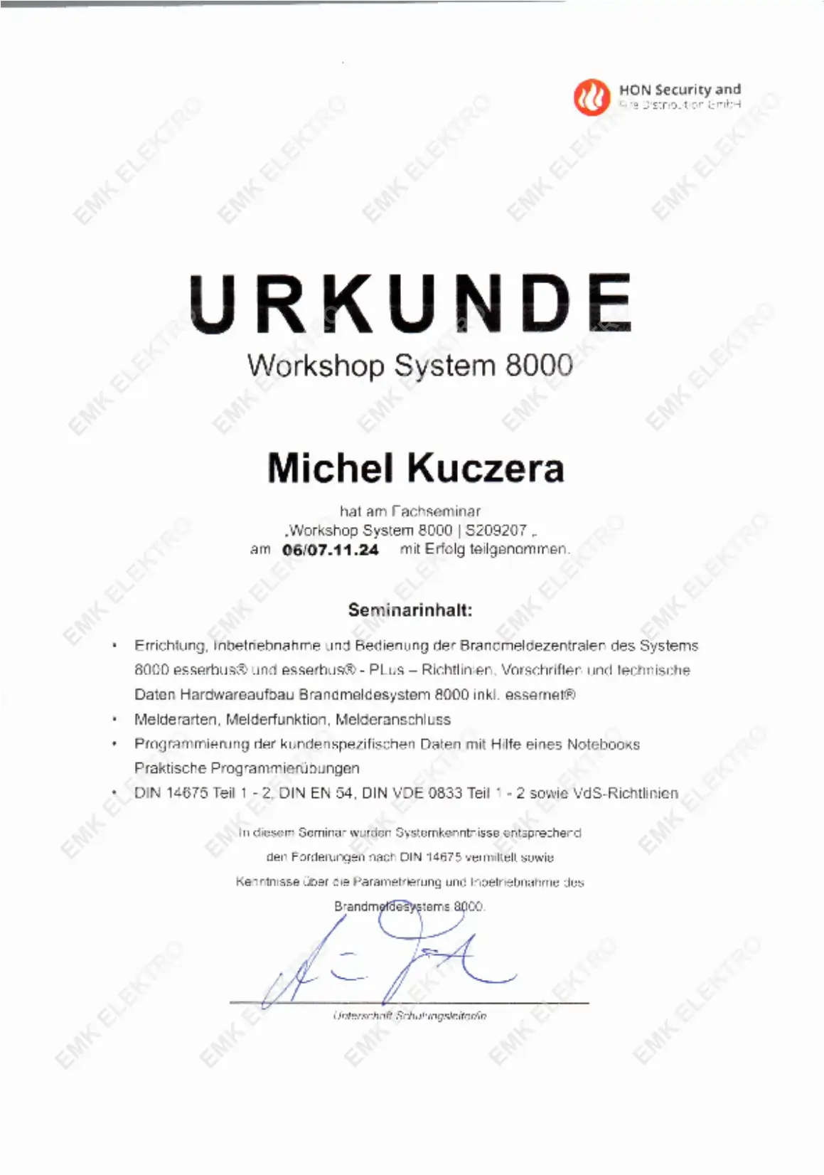 Die Firma EMK Elektro wurde im Oktober 2013 als Einzelunternehmen von dem Elektrotechnikermeister Michel Kuczera gegründet.